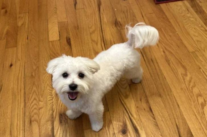 Un Cav-A-Malt sur un plancher et ayant la gueule légèrement ouverte