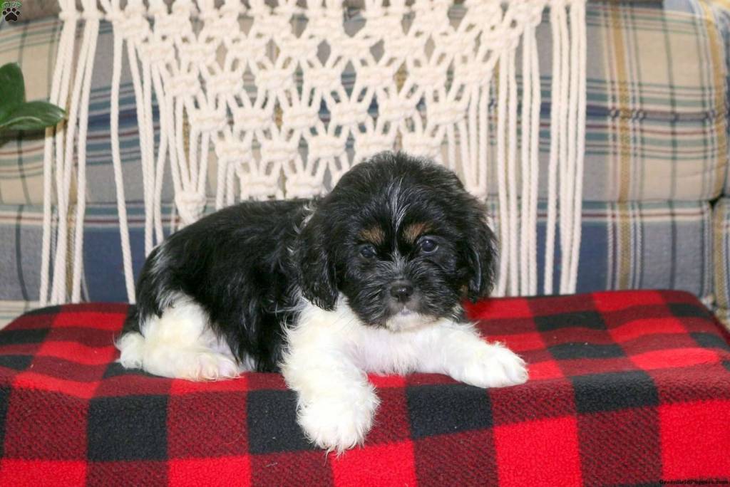 Un chiot Cava Tzu joue avec son compagnon