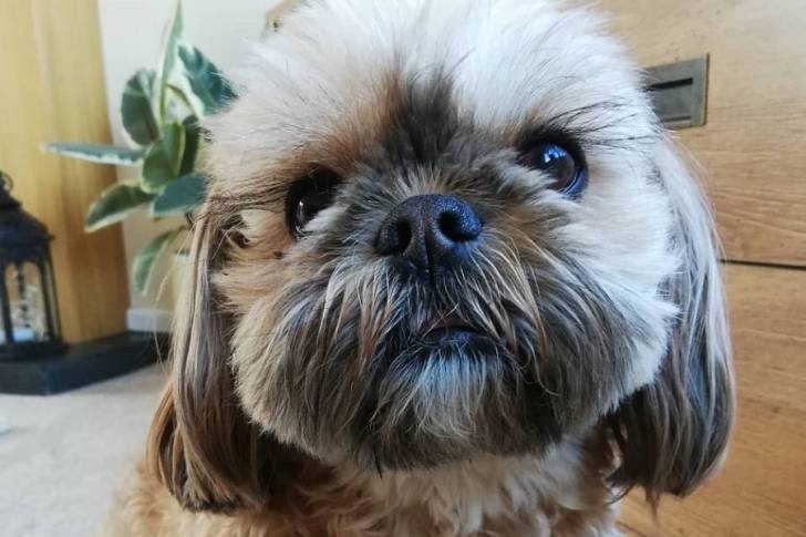 Photo de la tête d'un Cava Tzu avec un salon en arrière-plan