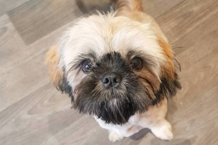 Photo prise de haut d'un Cava Tzu assis sur un plancher en bois