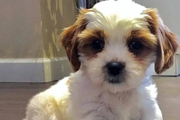 Un Cava Tzu assis sur un plancher en bois
