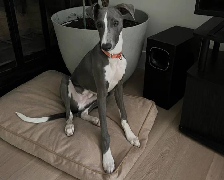 Des chiots Chart Polski essaient en vain de monter sur le canapé