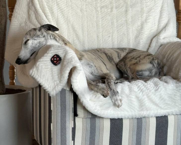 Un Chart Polski allongé sur un fauteuil et semblant dormir