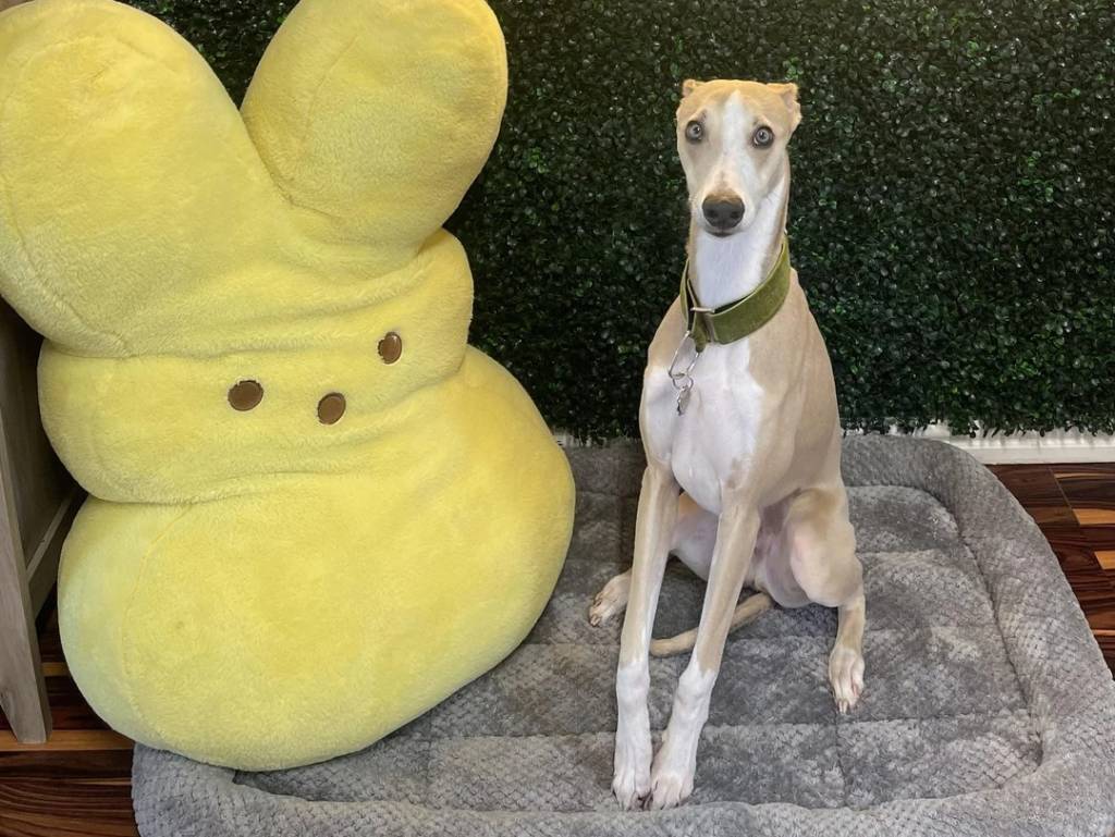 Un Chart Polski assis sur un panier