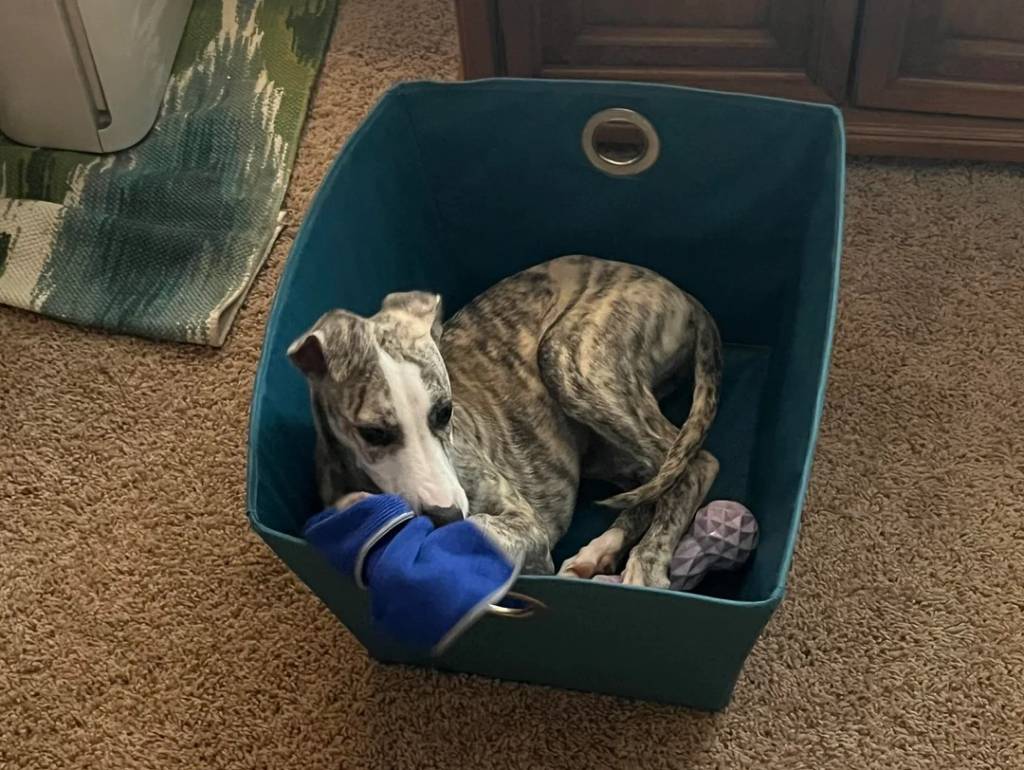 Un Chart Polski allongé dans un bocal en plastique