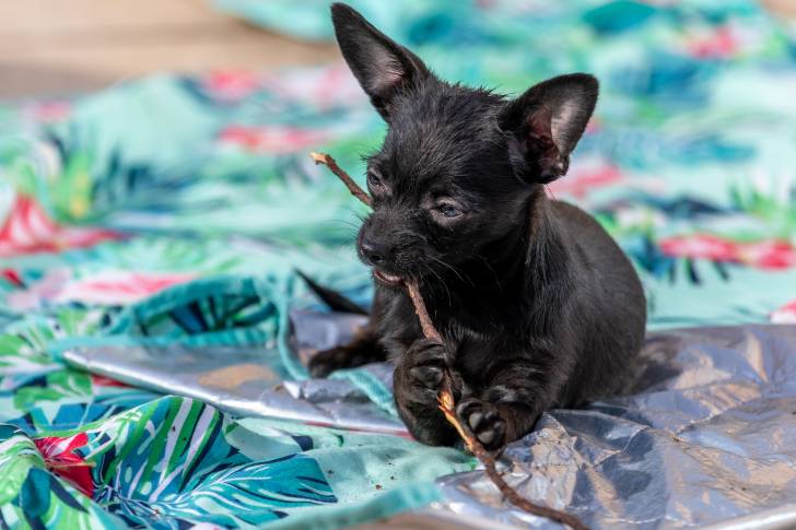 Des jeunes chiens Chi-Poo qui jouent ensemble