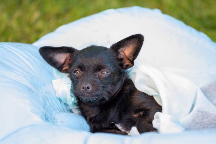 Des jeunes chiens Chi-Poo qui jouent ensemble
