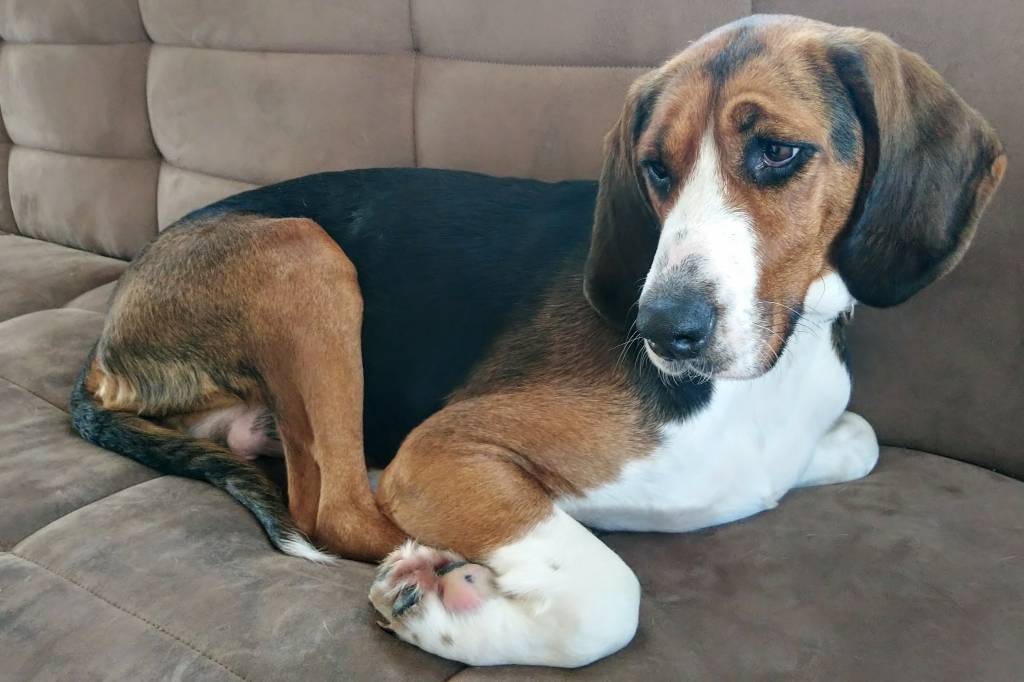 Un Chien Courant Finlandais jaloux à cause d'une friandise