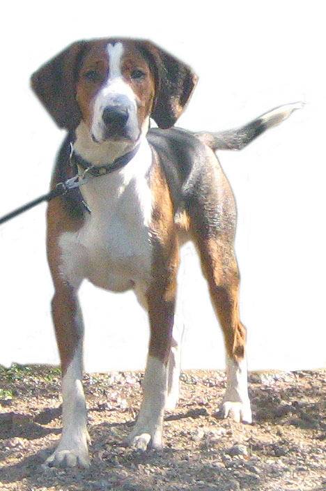 Un Chien Courant Finlandais jaloux à cause d'une friandise