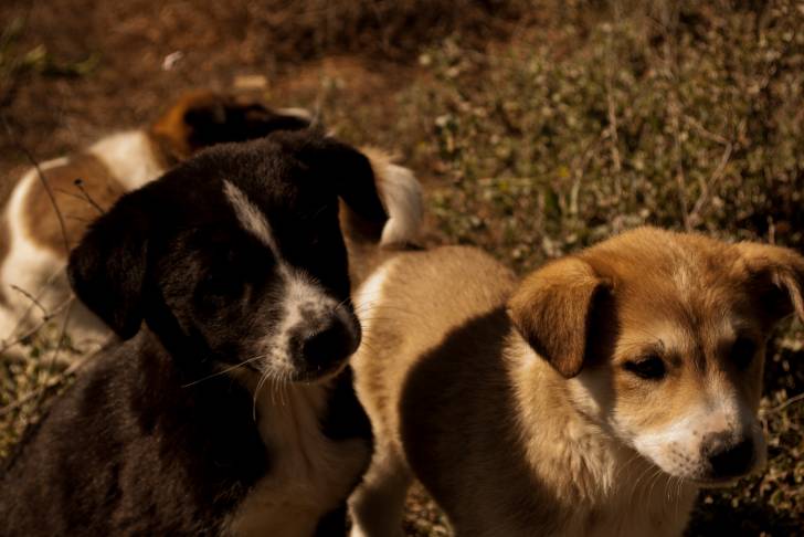 Un Chien de Canaan essaie de pêcher dans un bassin
