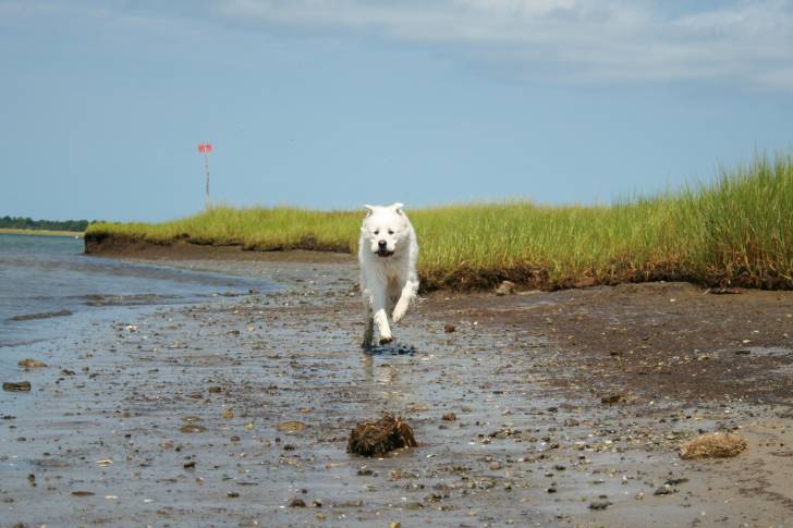 Un chien Berger des Pyrénées assailli par des chevreaux