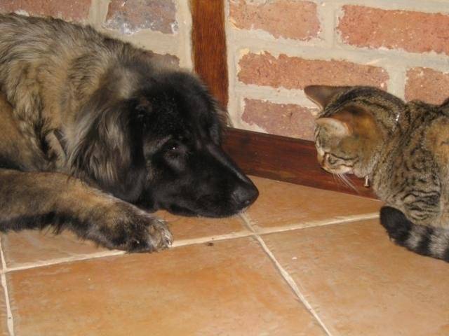J'ai d'une part 1 chienne qui "protège" l'arraignée et d'autre part 1 chat qui la "convoite"!