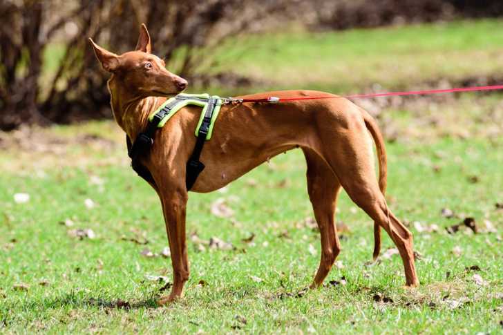 Un Chien du Pharaon qui porte un harnais