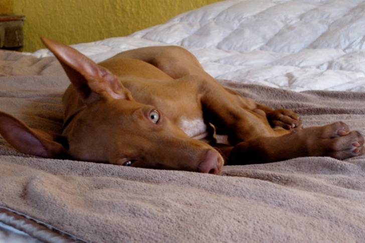 Un Chien du Pharaon allongé sur une couverture marron