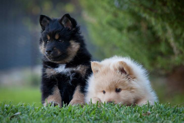 Quelques scènes de vie d'un Chien Finnois de Laponie de 4 mois