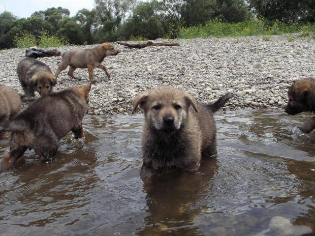 Les chiots en sortie à la rivière