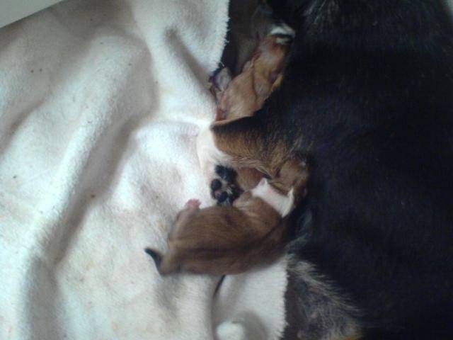voila les bébé de meg notre chienne qui a mi bas le 26 mars j ai deja reserver celle avec le collier blanc!!!