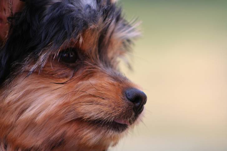 Un gros plan du visage d’un Chorkie au pelage noir et fauve