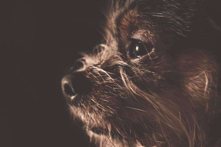 Un gros plan d’un Chorkie au pelage noir et fauve