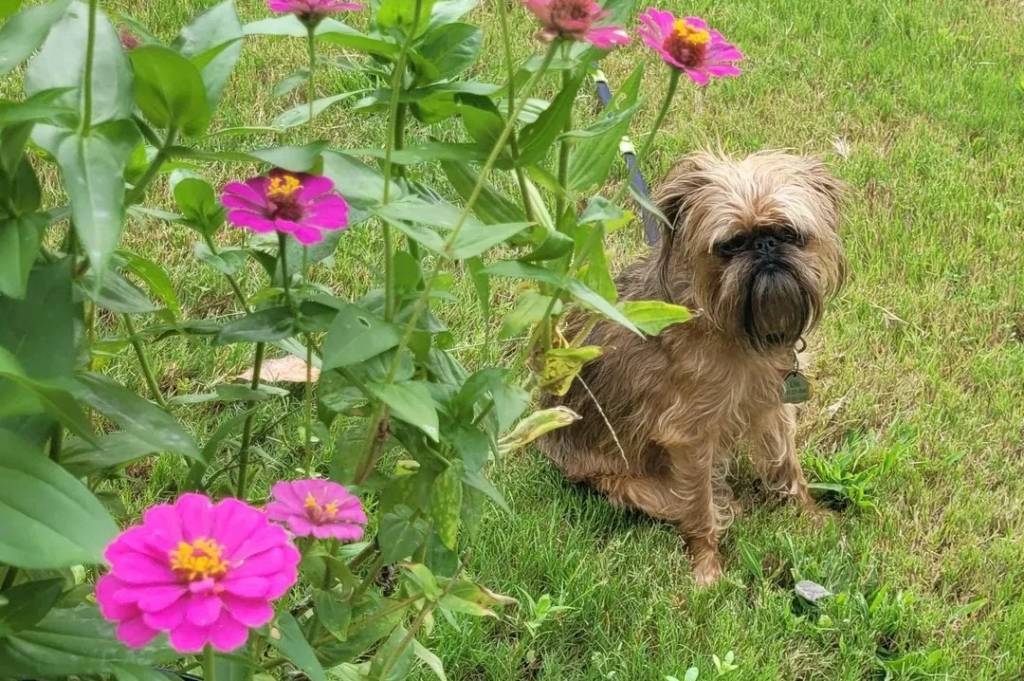 Un Chussel assis sur un terrain herbeux et portant un collier autour du cou