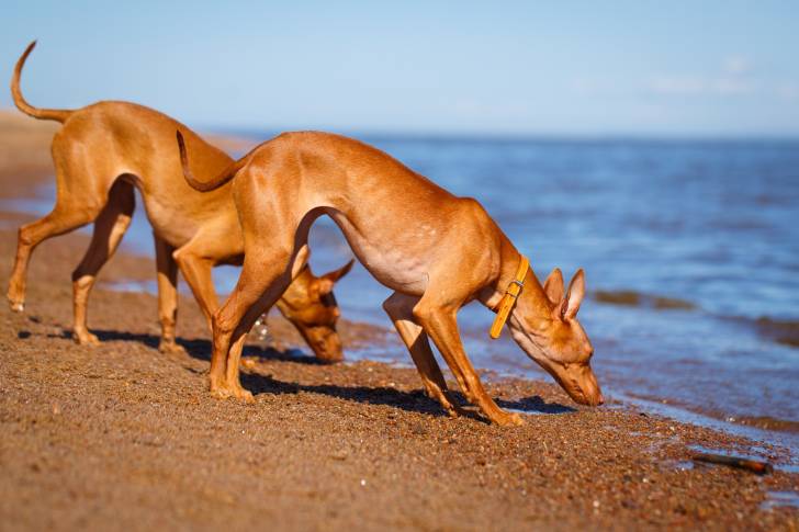 Un chiot Cirneco de l'Etna et sa mère très dociles