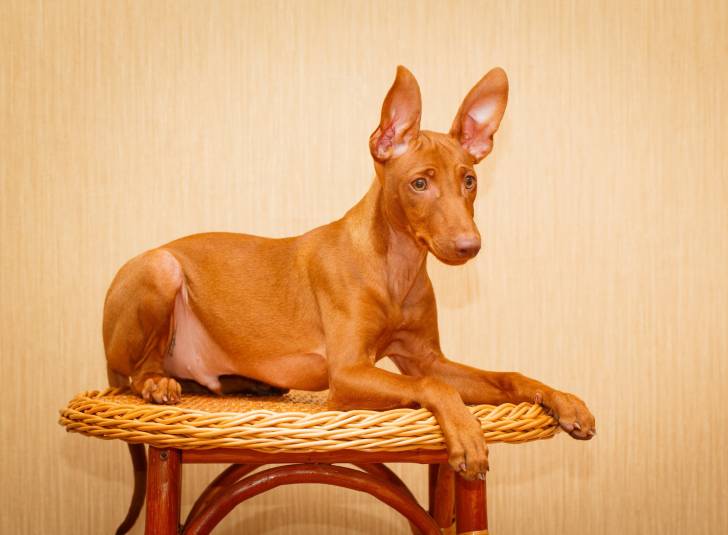 Un Cirneco de l'Etna allongé sur un tabouret