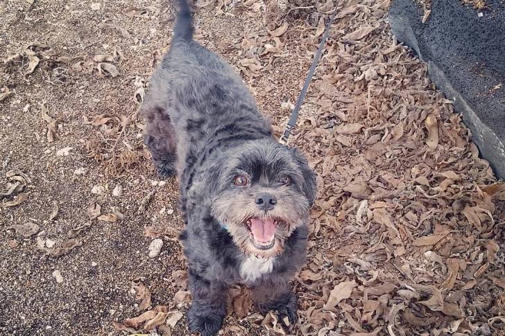 Ces trois chiens Cock-A-Tzu se baladent le long d'un port