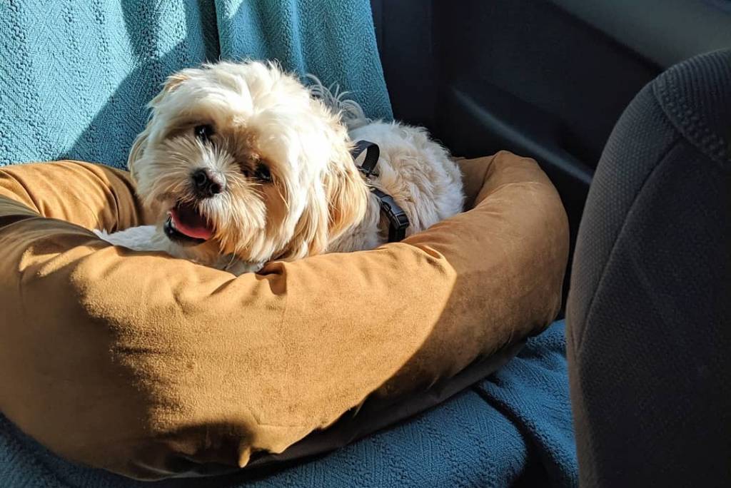 Ces trois chiens Cock-A-Tzu se baladent le long d'un port