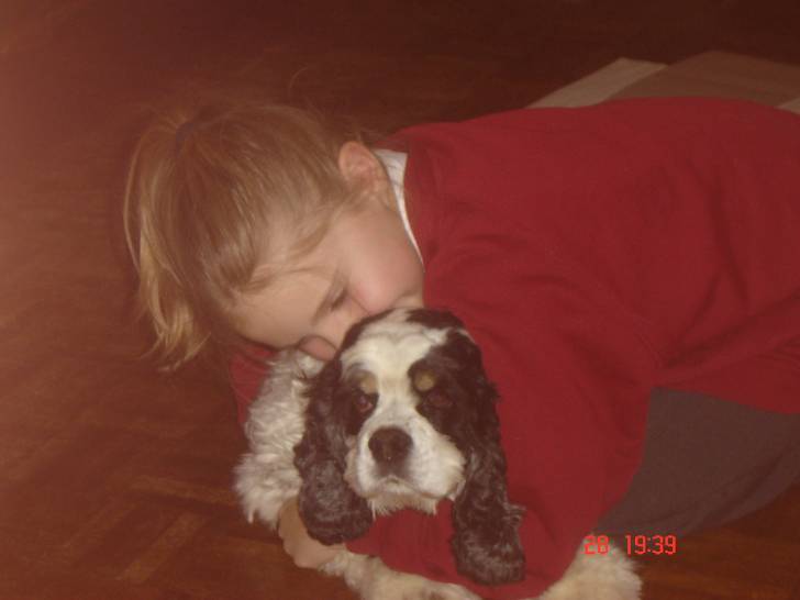 Des fillettes et des Cockers Américains très amis
