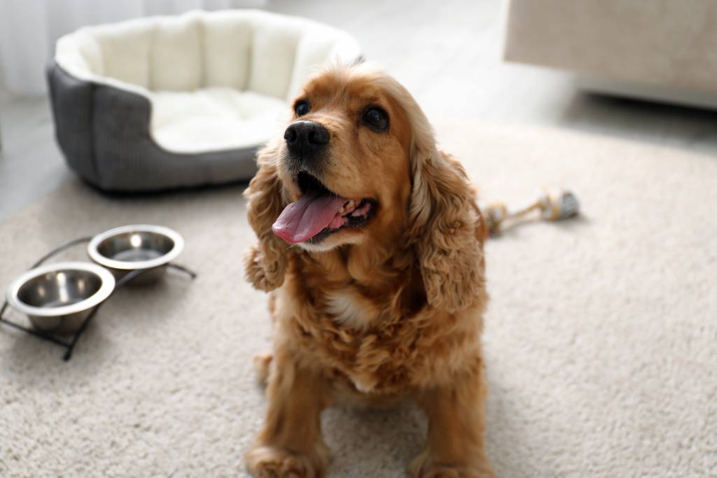 Un Cocker Anglais en train d'attendre son repas