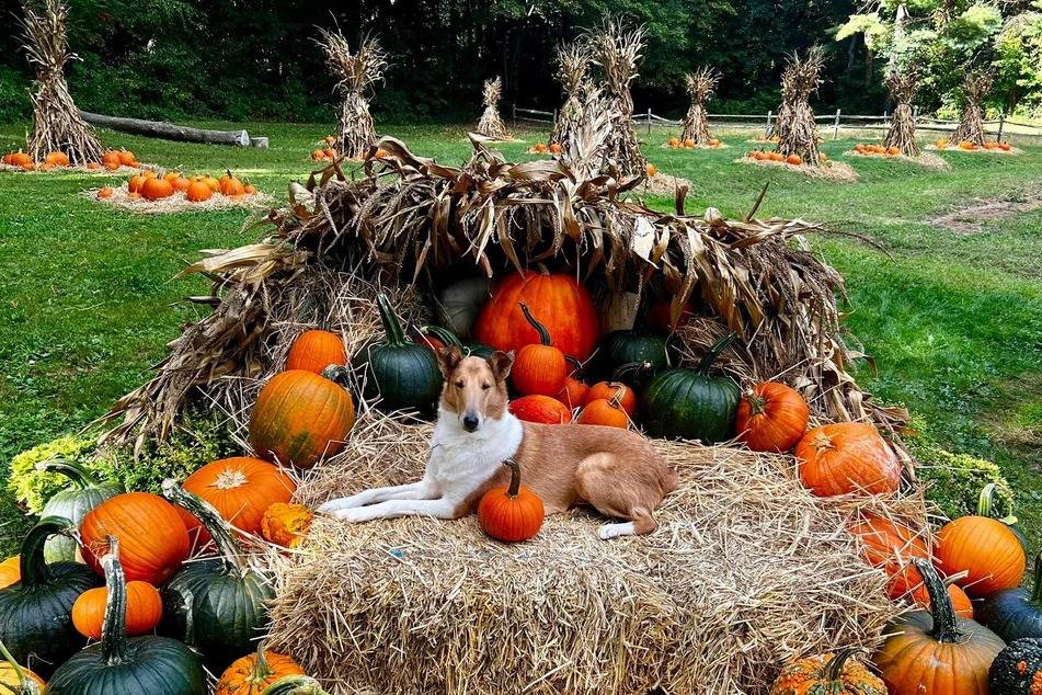 Un Colley à Poil Court allongé sur du foin et semblant détendu