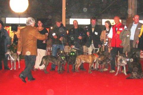 Marseille Expo 2004 - L'ensemble des chiens primés et leurs propriétaires dans le ring d'honneur.