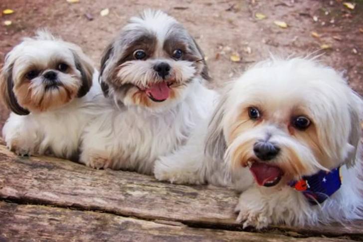 Trois Daisy Dogs posés sur un tronc d'arbre