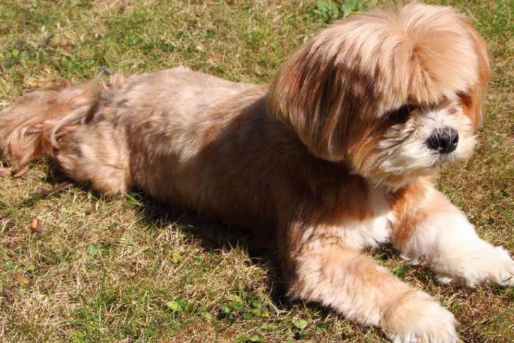 Un Daisy Dog étendu sur de l'herbe