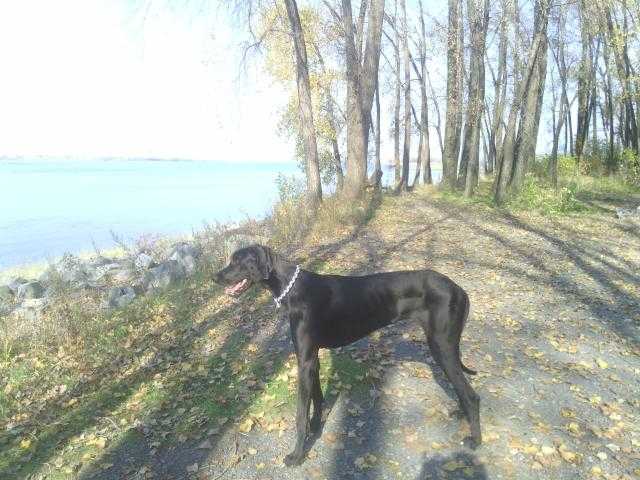 Photo de Bowie à 12 mois, dogue allemand noir.