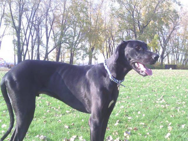 Photo de Bowie à 12 mois, dogue allemand noir.