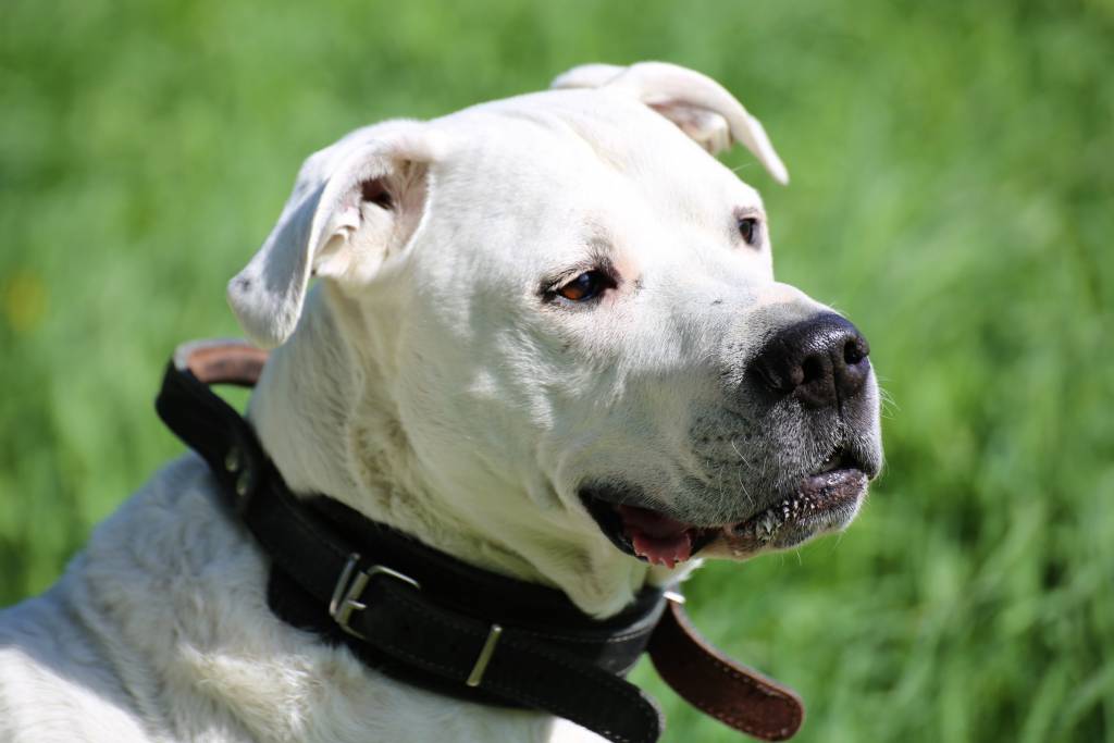 Un Dogue Argentin qui porte un collier