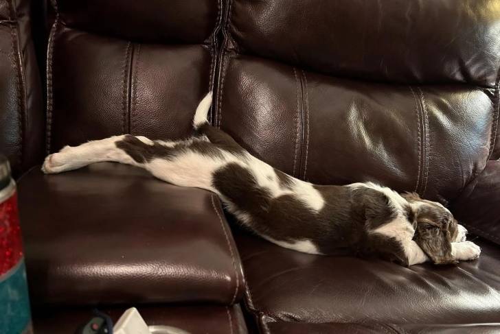 Un Épagneul de Chasse Polonais allongé sur un canapé