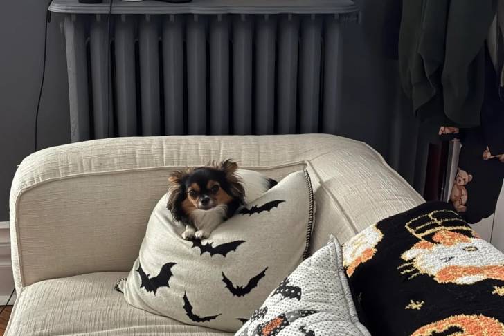 Un Épagneul Nain Continental Papillon sur un canapé et semblant détendu