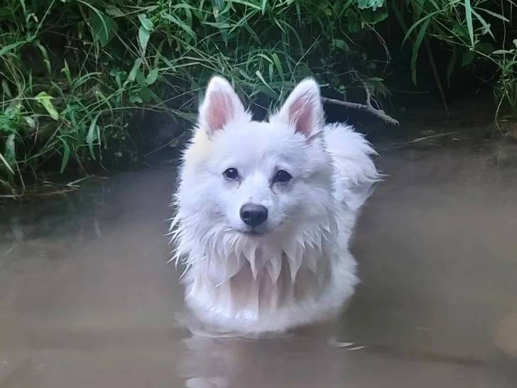 Un Esquimau Américain dans l'eau et semblant détendu