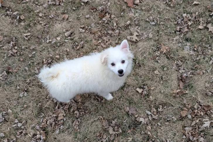 Un Esquimau Américain sur un terrain herbeux et regardant vers la caméra