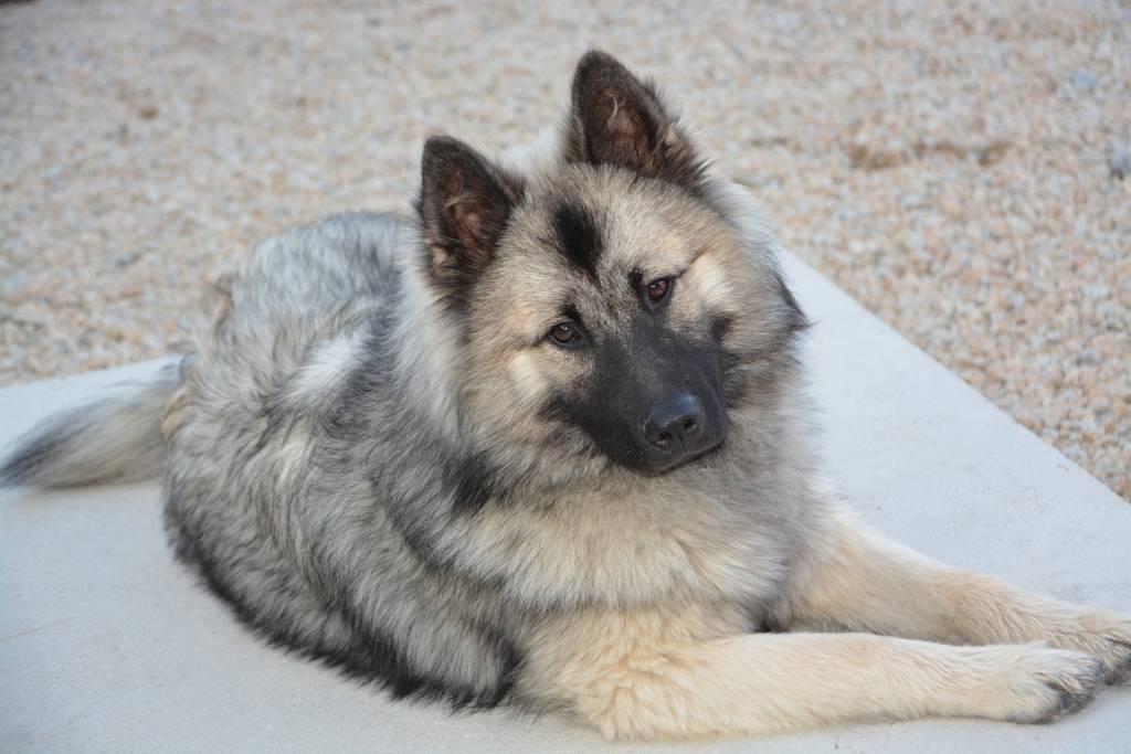 Un Eurasier de 3 mois qui aime nager dans la piscine