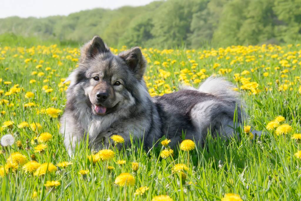 Un Eurasier de 3 mois qui aime nager dans la piscine
