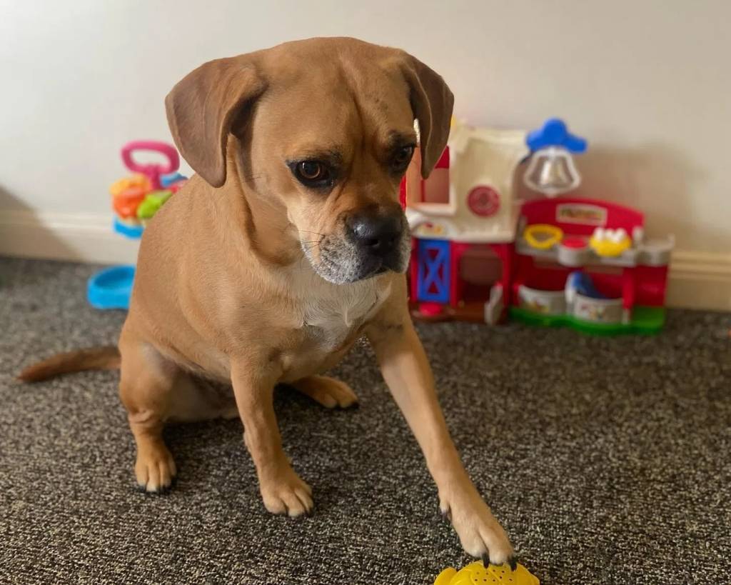 Un Frengle assis sur une moquette