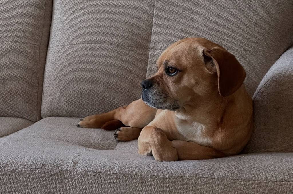 Un Frengle allongé sur un canapé et semblant détendu