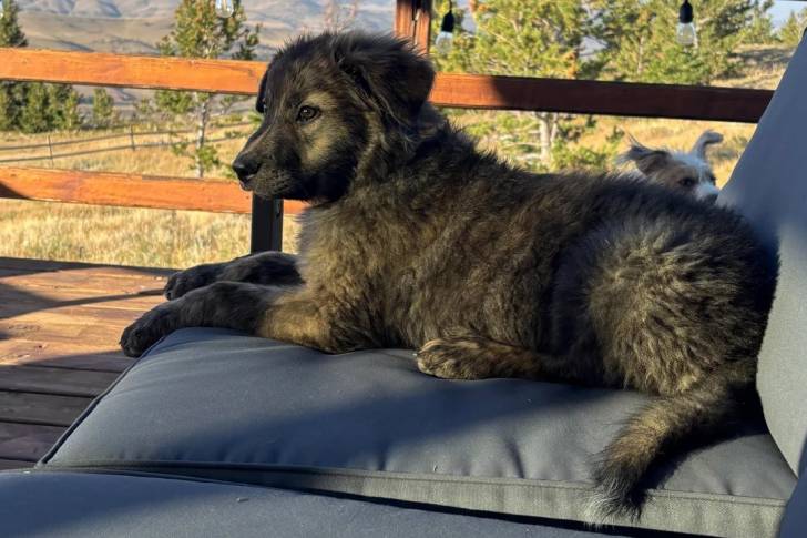 Un German Anatolian Shepherd allongé sur un canapé et semblant détendu