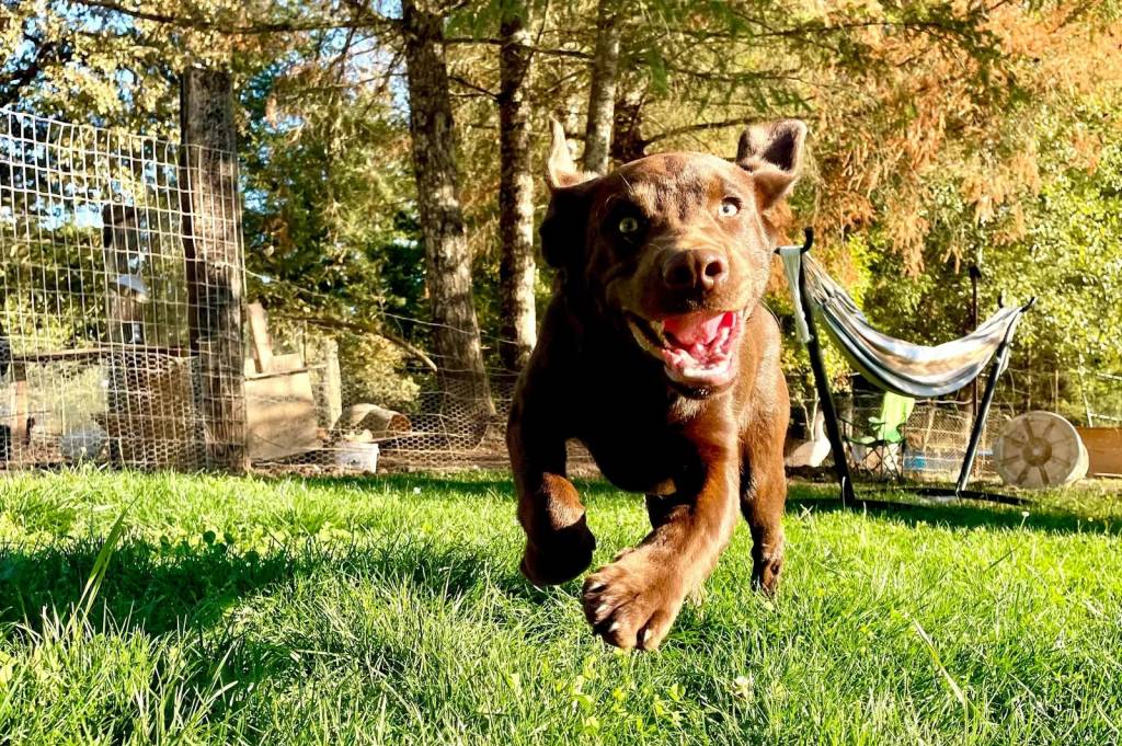 Un Goldador courant sur un terrain herbeux
