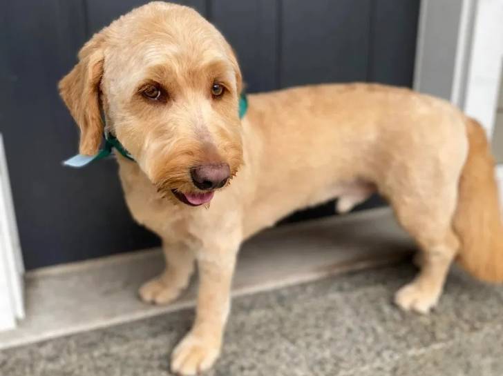 Un Goldendoodle espiègle joue en compagnie d'un bébé