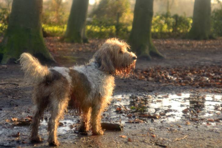 Des chiots Grands Bassets Griffons Vendéens demandent des caresses