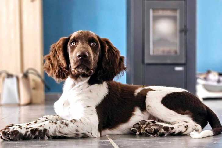 Exercice de dressage de base à l'arrêt d'un jeune Munsterlander